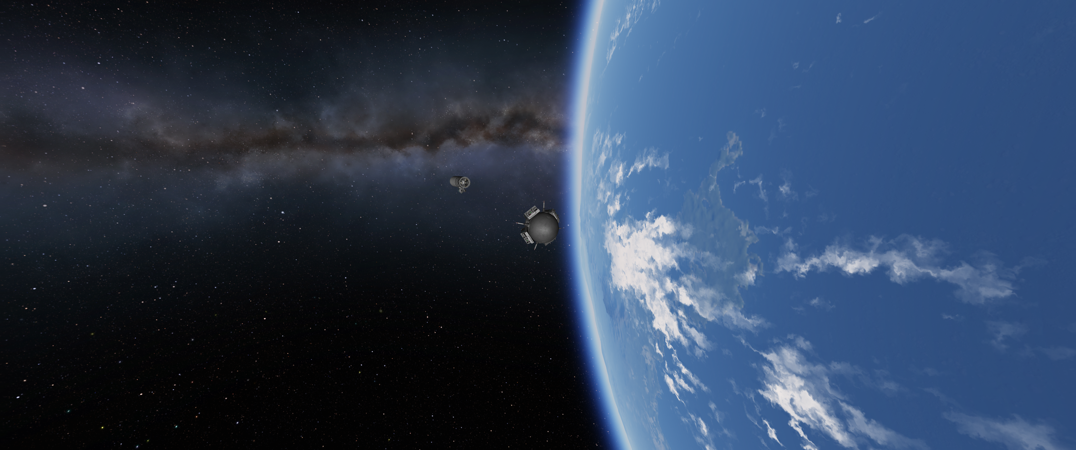The launch vehicle has plenty of power to get the job done, but it is a bit wobbly. Due to a design quirk of the rocket, you can only decouple the solid fuel boosters once they have burned out. Otherwise, the second stage won’t get away fast enough to clear them and will collide with the boosters, damaging or destroying the rocket. You also can’t tilt the launch vehicle too much before the booster decoupling, either. I learned all of this in a very painful way during initial testing. All of this means that the initial climb will be a bit steep and it took me a few tries to get into a stable orbit on the initial tests because of this. I finally got the hang of it, however, and was then ready to launch with the payload.