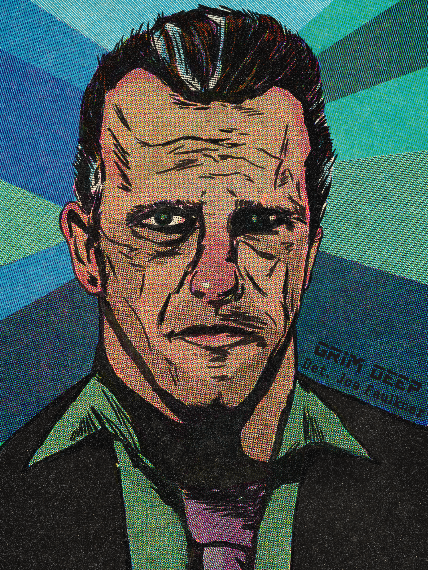 I’ve created this new portrait of Joe Faulkner, the main character from my novel Grim Deep. It was painted in Rebelle and Photoshop using a technique that emulates the duotone screenprinting methods from vintage comic books. For an excellent overview of the original techniques, see this series of articles on Legion of Andy. I just love the analog look of this kind of art and I think it fits the styling of my novel well…